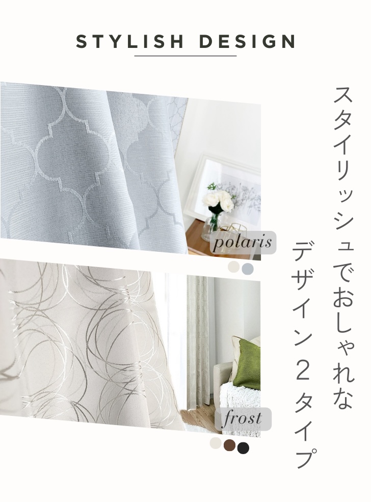| 裏地付きカーテンは生地との間に空気層ができることで、遮熱・保温星が高くなります。 デザイン性の高い非遮光生地と裏地を合わせることで、デザイン性と機能性を高めることができます。 夏は涼しく、冬はあたたかく1年中快適に過ごせます。冷暖房の効率を上げることは省エネ効果も期待できます。 |