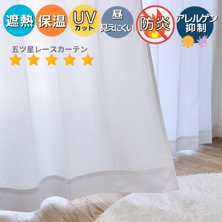 レースカーテン 防炎 アレルゲン抑制 遮熱 保温 昼見えにくい UVカット 防炎レースカーテン 幅100cm 2枚 UNV