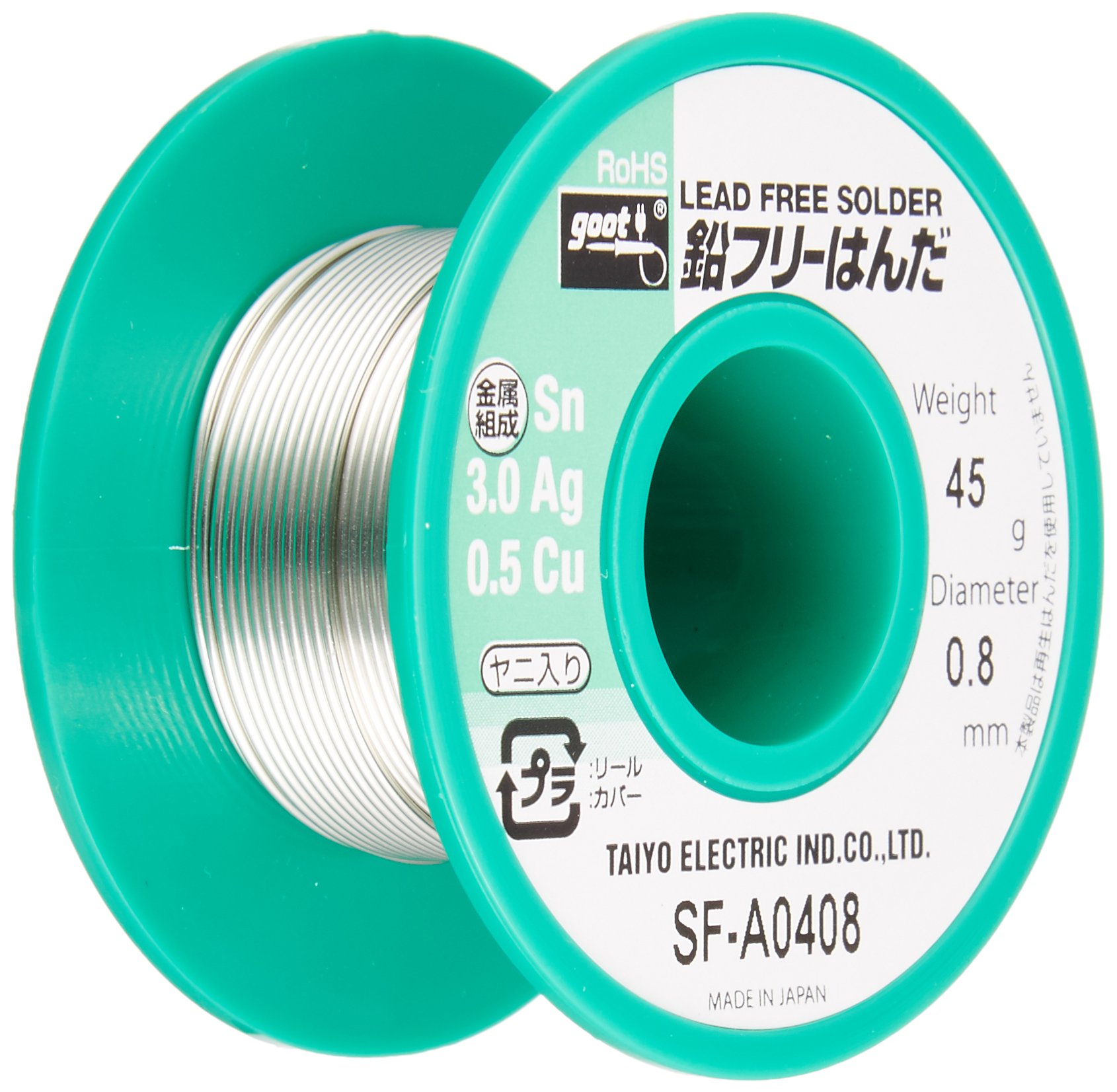 太洋電機産業(goot) 鉛フリーはんだ φ0.8mm スズ96.5%/銀3.0%/銅0.5% 45gリール巻 ヤニ入り SF-A0408