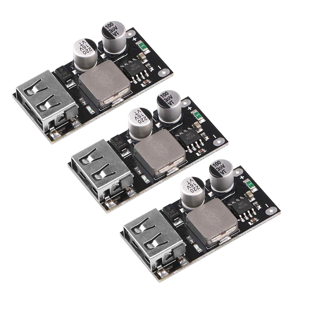 <b>3個DC-DC可変降圧コンバータ6V-32V(12 24V)電源降圧モジュール、QC3.0高速充電、シングルUSB降圧電源コンバータ、IPフォンHua-wei FCP用</b><br/><br/><br/><b>製品の特徴</b><br/>入力電圧範囲:6V?32V<br/>出力電圧:デフォルト5V、急速充電後に自動的に3V-12Vの間で調整<br/>出力電力:最大24W(5V / 3.4A、9V / 2.5A、12V / 2Aなど)<br/>出力電圧ケーブル補償機能<br/>変換効率:90%?97%<br/>複数の急速充電プロトコルをサポート<br/>入力過電圧、低電圧保護<br/>入力過電流保護<br/>出力過電流および短絡保護<br/>過熱防止機<br/><br/><br/><b>高速充電プロトコルをサポート</b><br/>DCP、BC 1.2、iP-hone、Sam-sungプロトコル<br/>クアルコムQC 2.0およびQC 3.0<br/>MTK