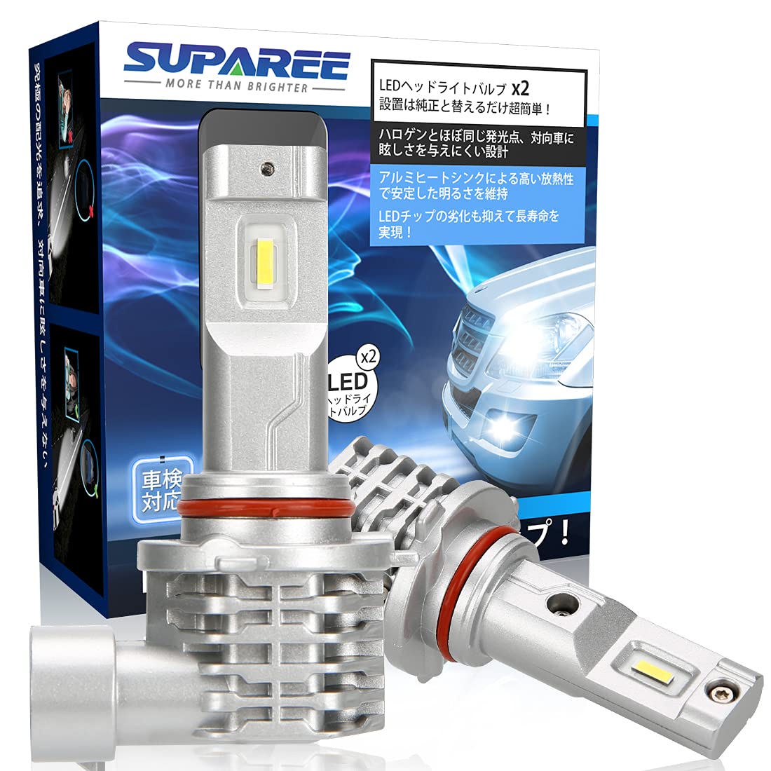 SUPAREE HB3 HB4 led ヘッドライト 新車検対応 12V/24V車対応(ハイブリッド車・EV車対応) ホワイト 6500K ファンレス