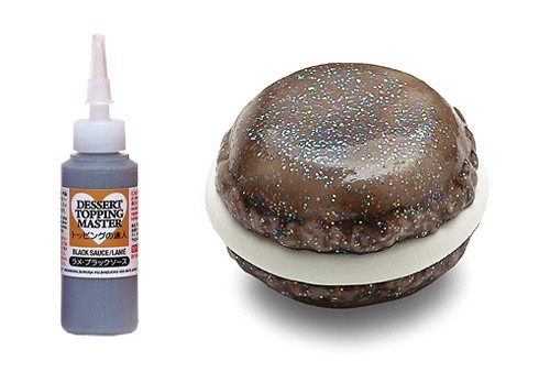 塗料です。スイーツデコレーションのパフェ、アイスクリーム、マカロン、フルーツなどを鮮やかにトッピングするソースです。乾くと透明色になり、ラメがいろいろな色でキラキラ輝きます。アクセサリー感覚のスイーツ作品はもちろん、プラバンを使った手作りのブローチや身の回りの小物を装飾するのも楽しみです。