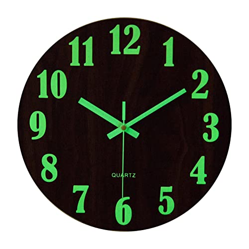 木製夜光掛け時計 壁掛け時計 無音 サイレント 暗くなると自動で光る 時計 壁掛け 蓄光蛍光 寝室用非電波壁かけ時計