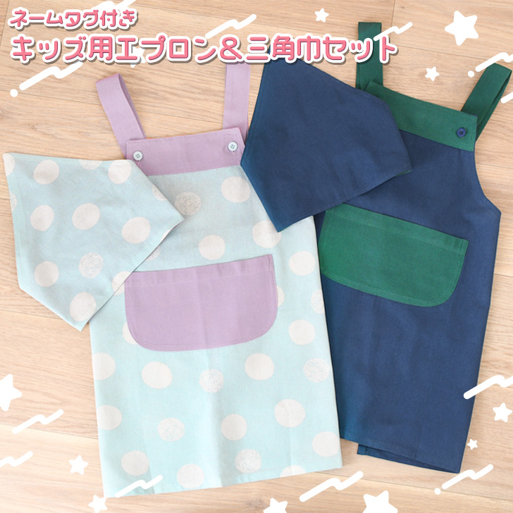ネームタグ付きキッズ用エプロン&三角巾セット