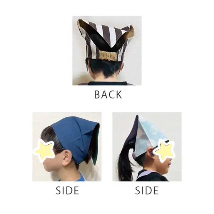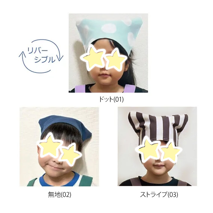 三角巾は被るだけのゴム仕様で着脱しやすく