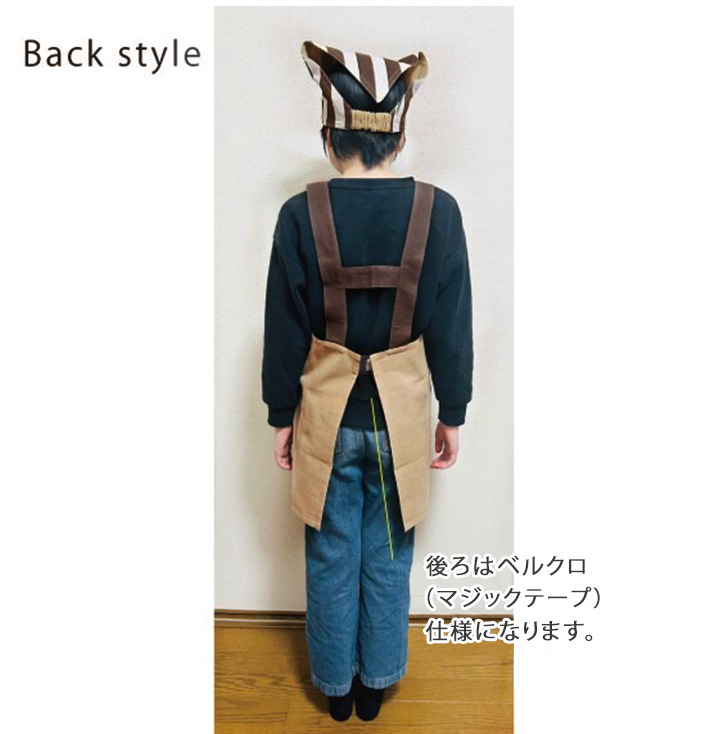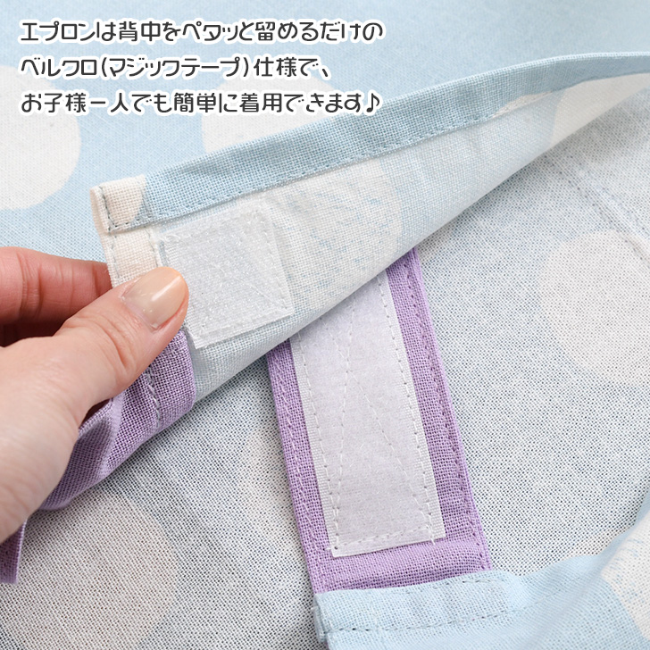 エプロンは背中をペタッと留めるだけのベルクロ仕様で、
