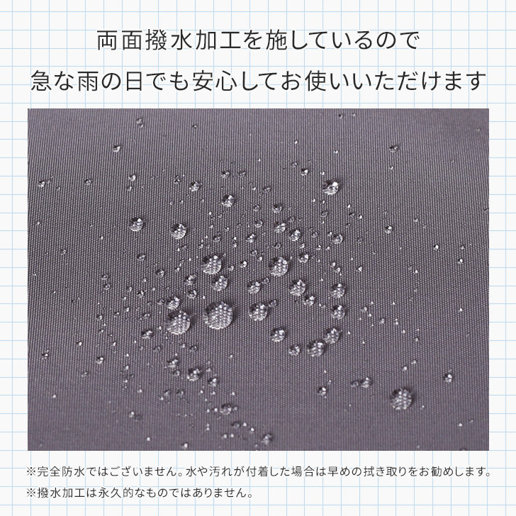 両面撥水加工を施しているので、急な雨の日でも安心してお使いいただけます◎