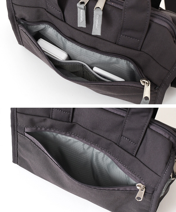 撥水加工や豊富なポケット、ダブルファスナー仕様など機能性も充実
