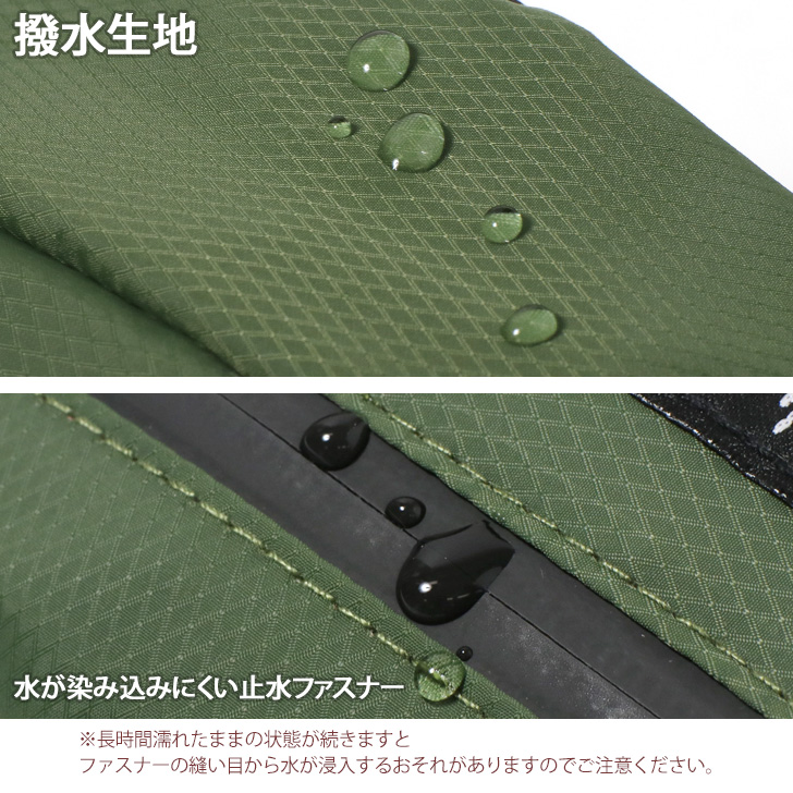 注意事項:ファスナーの縫い目から水が浸入するおそれがありますのでご注意ください。