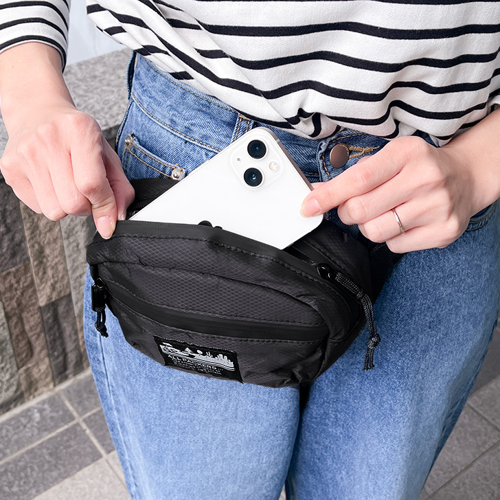 ストラップは長さ調節が可能なので斜めがけスタイルでも腰につけても◎