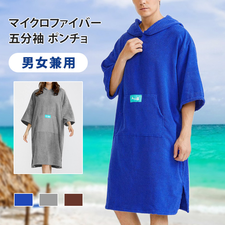 マイクロファイバー 五分袖 ポンチョ メンズ レディース タオル バスタオル 大判 吸水速乾 タオルポンチョ サーフポンチョ サウナポンチョ お着替えポンチョ バスラップ ラップタオル バスローブ 着替えタオル
