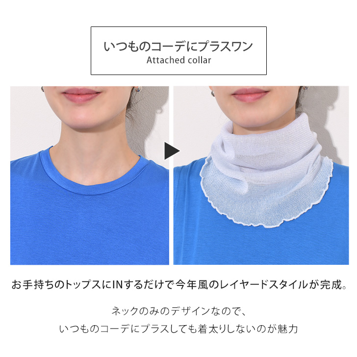 伸縮性に優れ締め付け感がなく、首元に優しくフィット