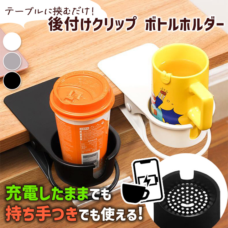 コップホルダー マグホルダー イス チェア 卓上固定 パソコン PC 挟むだけ 簡単 設置 取り付け ボトル マグボトル 紙コップ 飲み物 飲料 コンビニ コーヒー テイクアウト コップスタンド オフィス用品 事務用品 事務所 職場 便利グッズ 小物入れ 収納 ペン立て ペンホルダー コスメ収納 コスメホルダー こぼれにくい 落下防止 安定 自宅 OL 社会人 レジャー BBQ バーベキュー ピクニック 野球 サッカー スポーツ 観戦 フェス 釣り 仕事 仕事場 食卓 携帯電話 スマートフォン iphone 筆記用具 ミニ植木鉢 コスメ コスメグッズ 在宅 在宅ワーク テレワーク 省スペース ホワイト ブラック グレー 白 黒 灰色 単色 シック お洒落 オシャレ かわいい カワイイ かっこいい キッチン 日用品 雑貨 生活雑貨 ボトルケージ 500ml 670ml 900ml 缶 350ml 小物置き 小物収納
