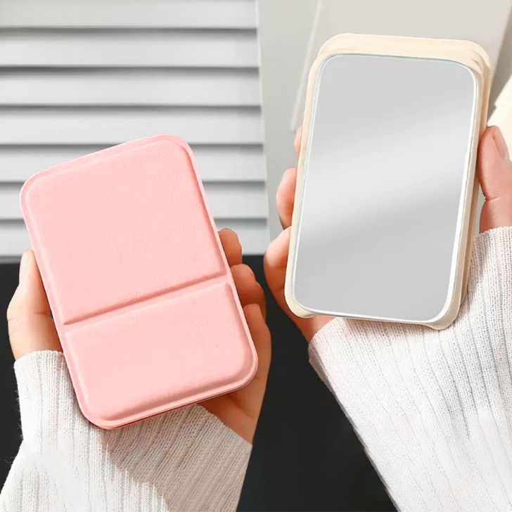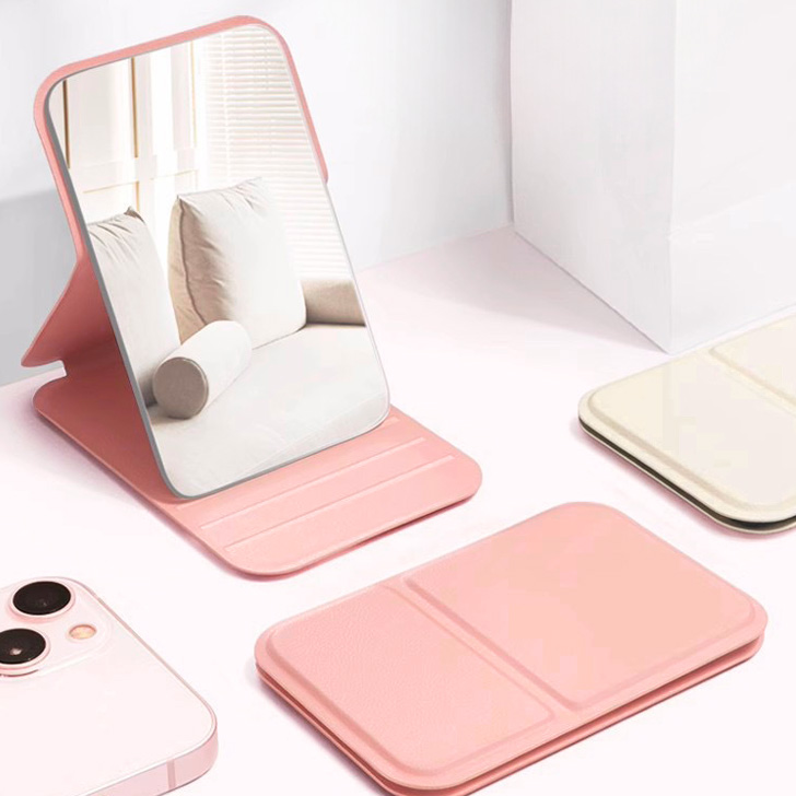シンプルなPUレザーの折りたたみコンパクトミラー