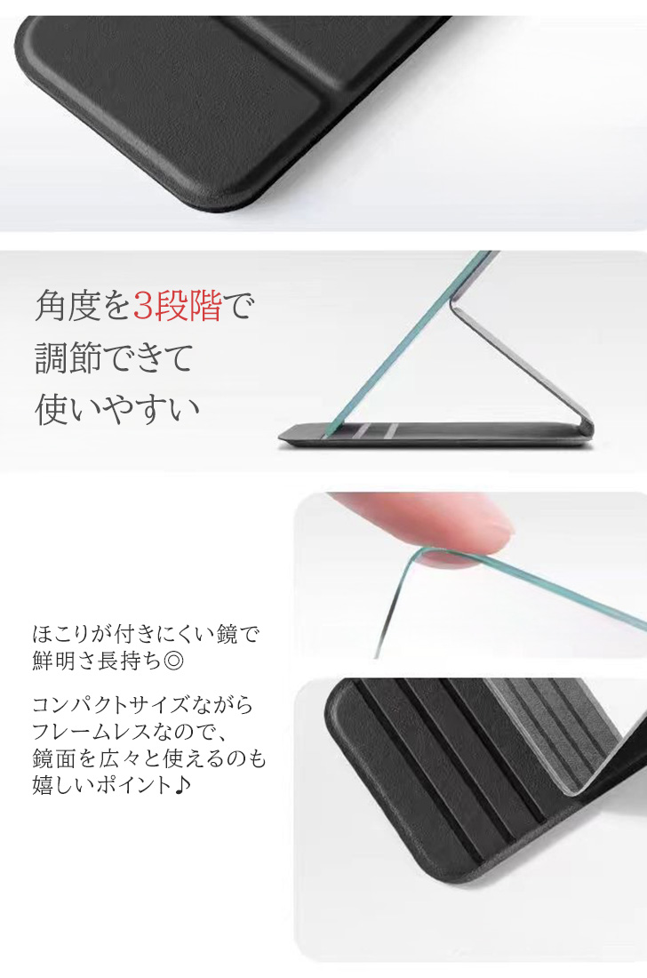 日用品 雑貨 便利グッズ グッズ アイテム メイク 化粧 ヘアメイク アイロン コテ 巻き髪 トラベル 化粧ミラー 一枚鏡 メイク鏡 かがみ 鮮明 綺麗 キレイ 薄い 薄型 拡大 角度 フェイクレザー PU PUレザー レザー 収納 家 部屋 寝室 インテリア 韓国 北欧 通勤 通学 オフィス デスク 机 職場 事務所 会社 OL 学生 高校生 女子高生 jk 大学生 子ども こども かわいい 可愛い 海外 モダン 韓国雑貨 北欧雑貨 デイリー 普段使い プレゼント ギフト 贈り物 新生活 誕生日 母の日 引越し 引っ越し ひとり暮らし 一人暮らし 女性 女子 女の子