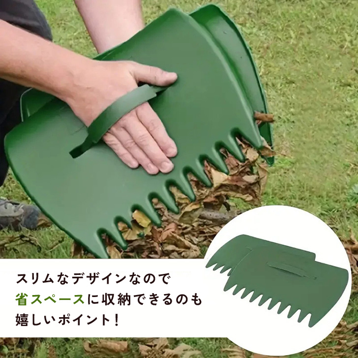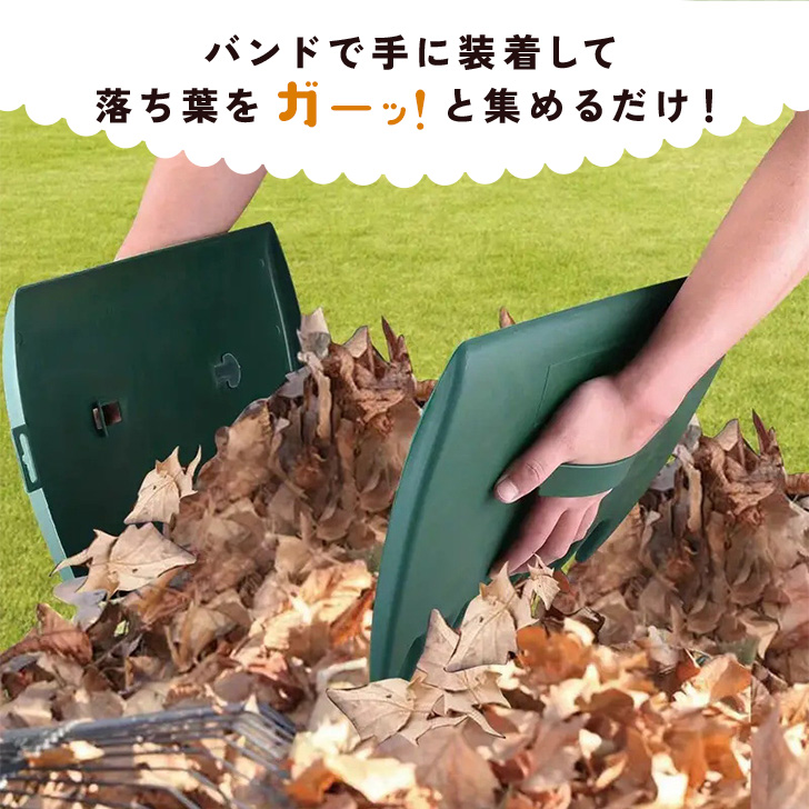 バンドで手に装着して、落ち葉をガーッと集めるだけ!