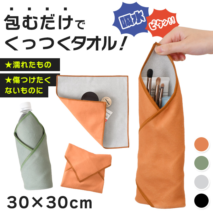 ピタッとくっついて包むだけ!不思議なくっつきタオル(30×30cm)