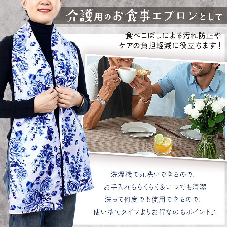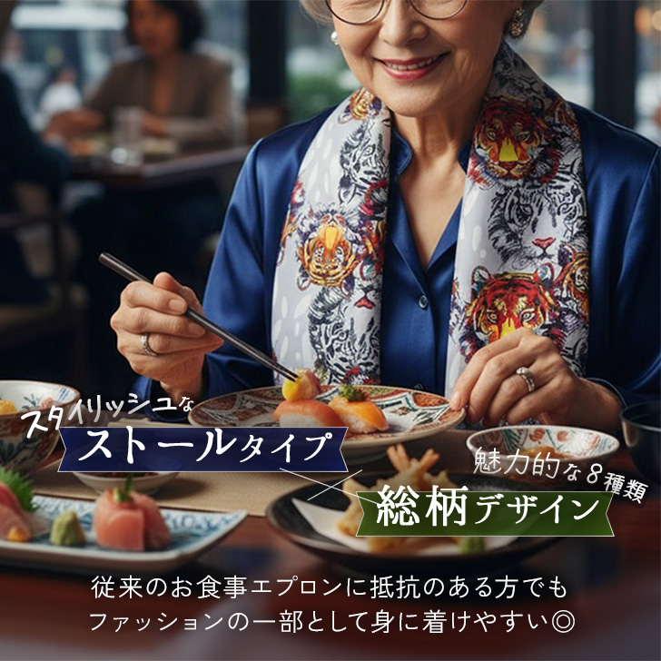 丸洗いで清潔&オシャレな総柄デザイン!ストールタイプ食事エプロン