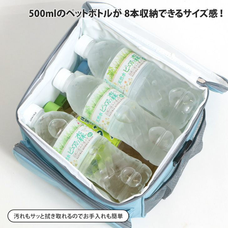 保冷・保温効果が高く、クッション性のある丈夫なPEVA素材を内側に使用