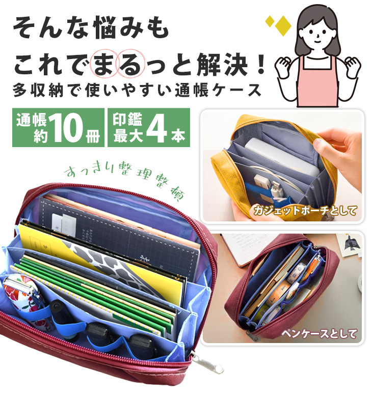 通帳約10冊と印鑑最大4本をまとめて収納できる大容量◎