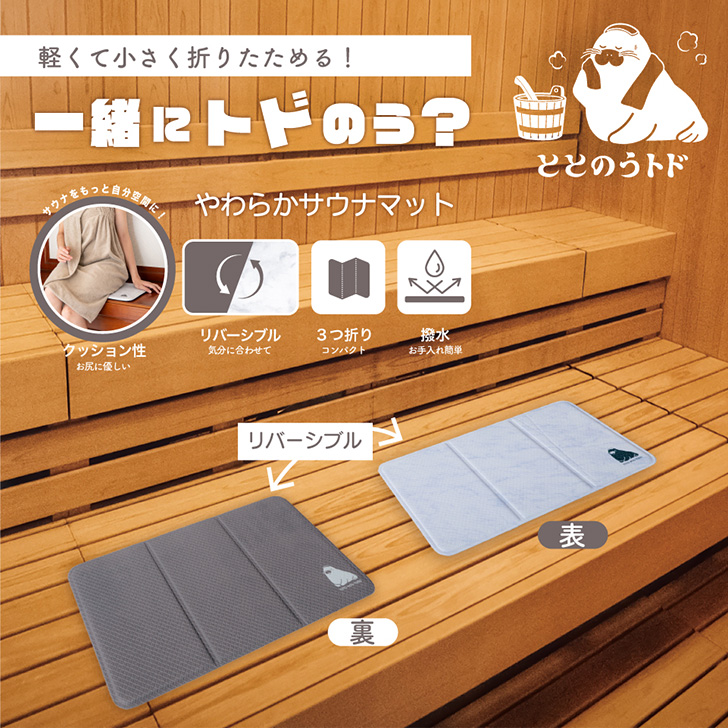 ●トドのプリントがワンポイントになったリバーシブルで使えるサウナマット
