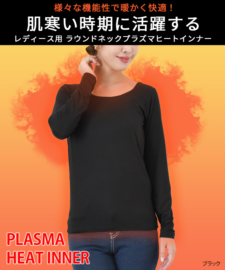 肌寒い時期に活躍する、ラウンドネックプラズマヒートインナー
