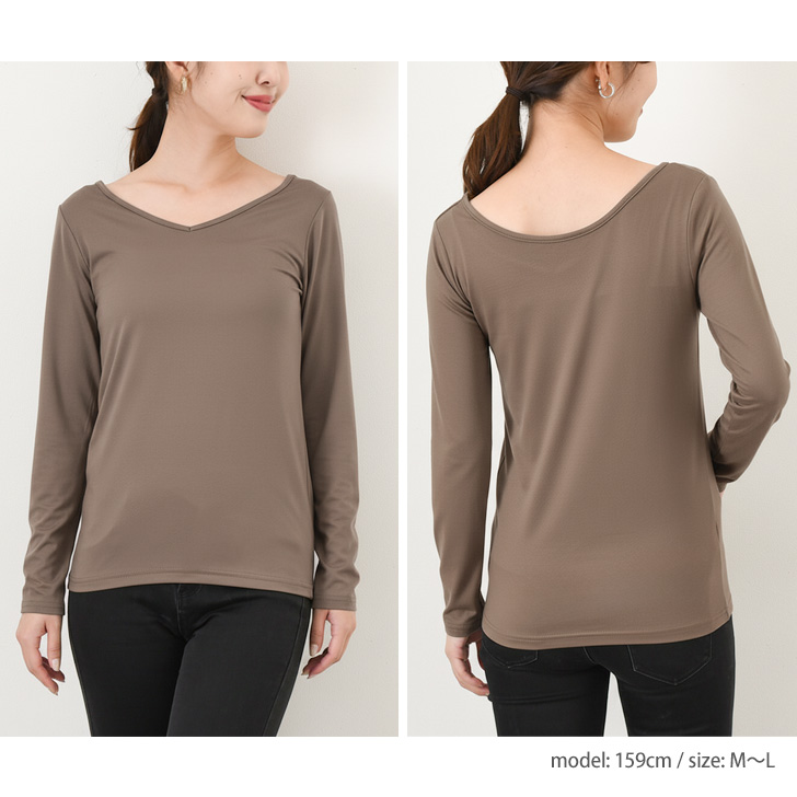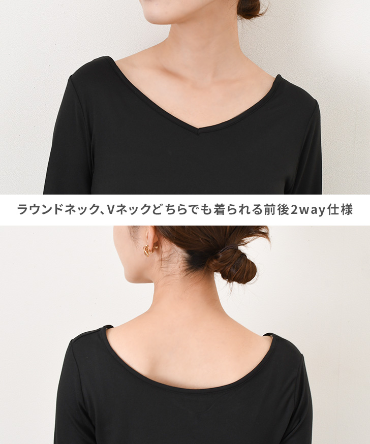 ラウンドネック、Vネックどちらでも着られる前後2way仕様