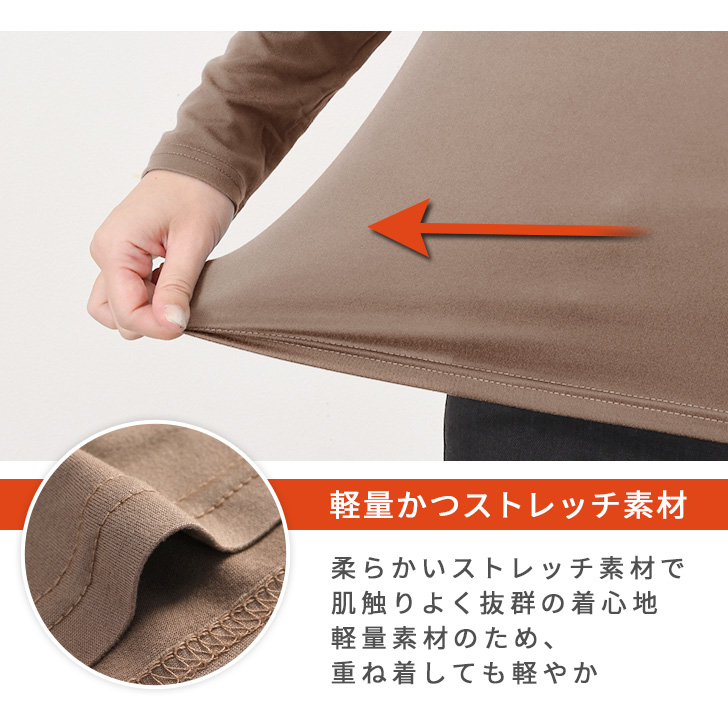 特殊な吸湿発熱素材により薄くても暖かく、重ね着しても着太り無し