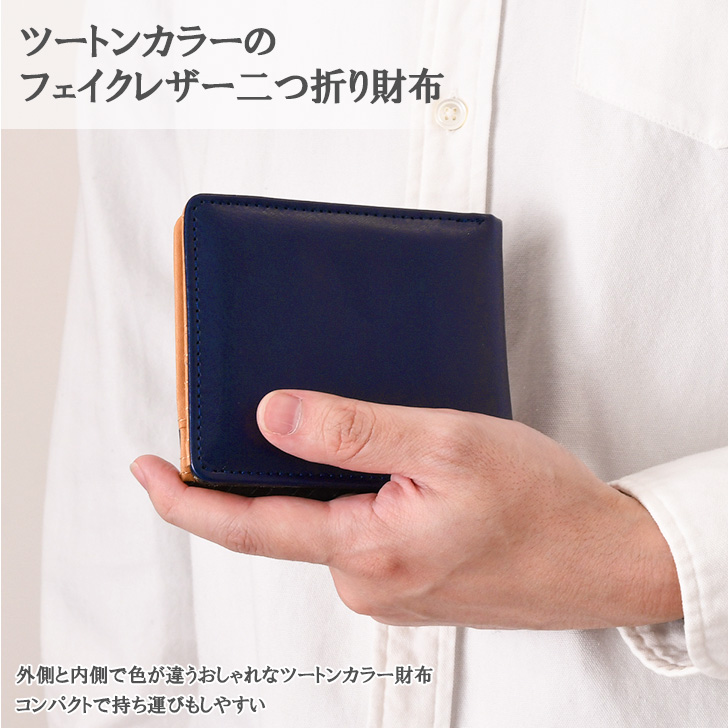 ●ツートンカラーのフェイクレザー二つ折り財布
