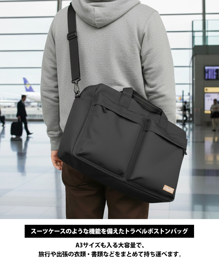 A3サイズも入る大容量で、旅行や出張の衣類・書類などをまとめて持ち運べます。