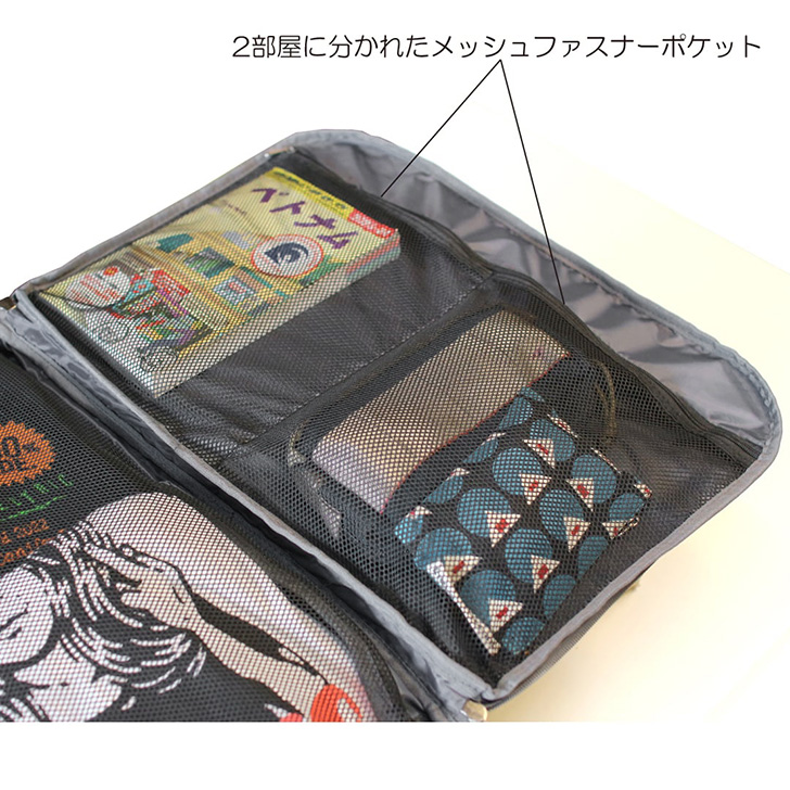ファスナー付きメッシュポケット×2、ファスナーメッシュポケット×1