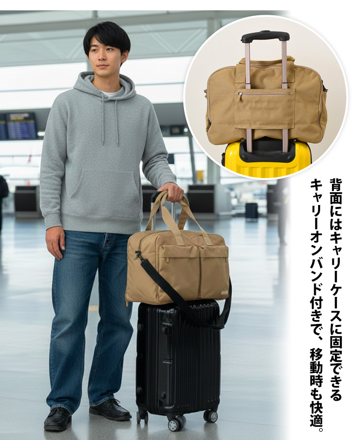 スーツケースのような機能を備えたトラベルボストンバッグ