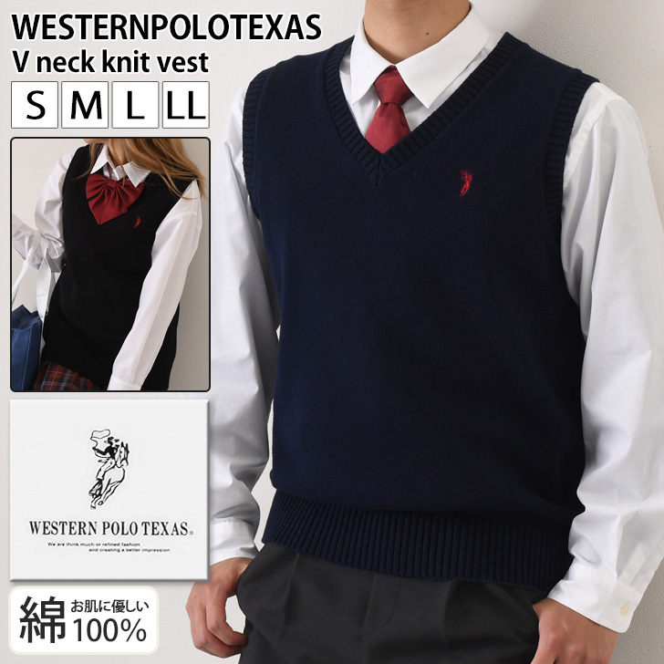 WESTERNPOLOTEXAS(Vネック)ニットベスト レディース メンズ 制服 POLO ユニセックス 男女兼用 ニットベスト スクール 学生服 ワンポイント 刺繍 スクールベスト