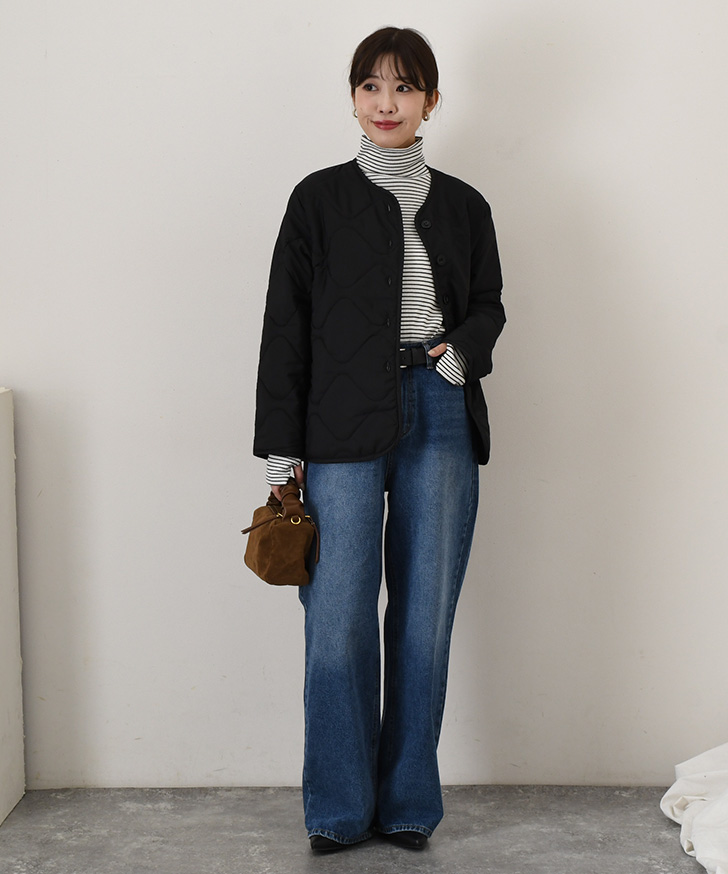 ◆身長160cm/普段トップスM/ボトムM着用 ・着丈:お尻にかかるくらい ・袖丈:手の甲にかかるくらい ・肩幅:ぴったり ・身幅:ぴったり コメント:全体的にぴったりなサイズ感でした。特に腕周りがタイトに感じたので、厚手のニットなどに合わせると窮屈そうです。