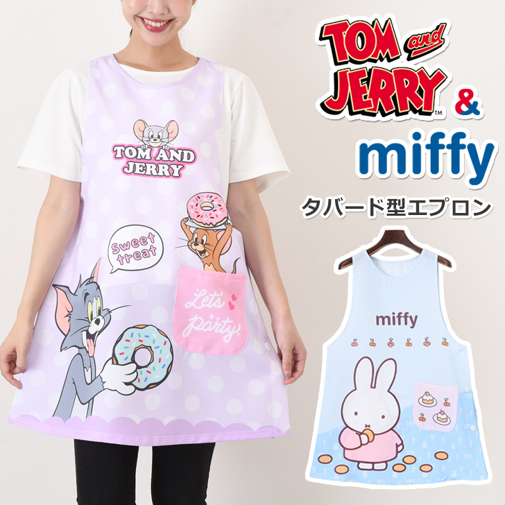 かわいいトムとジェリーとミッフィーのイラストが描かれたエプロン!