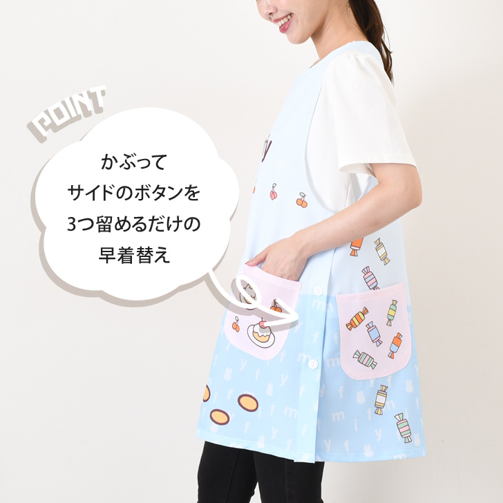 かぶってサイドのボタンを3つ留めるだけの早着替え!