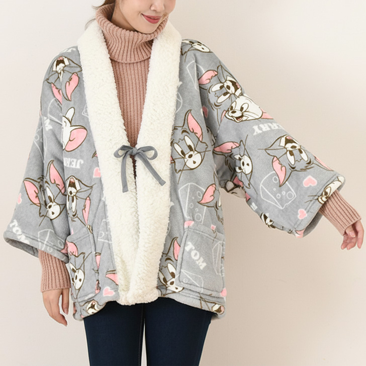 かわいいキャラクター柄のあったか裏ボアはんてん!