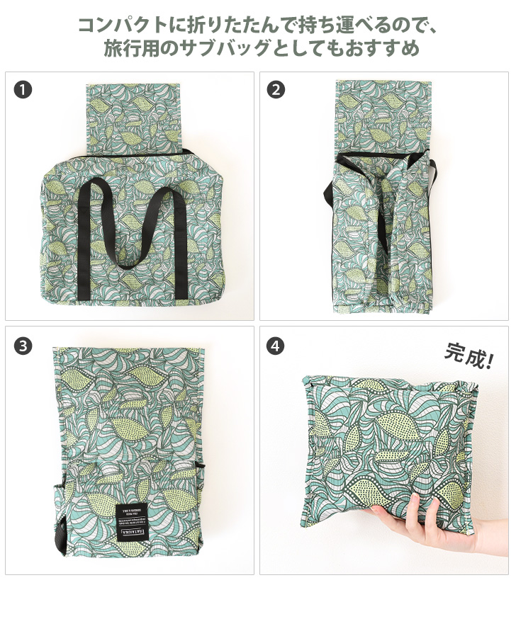 使わない時はコンパクトに折りたたんで持ち運べるので、旅行用のサブバッグとしてもおすすめ