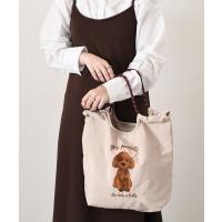 アニマル刺繍がポイントのコードトートバッグ