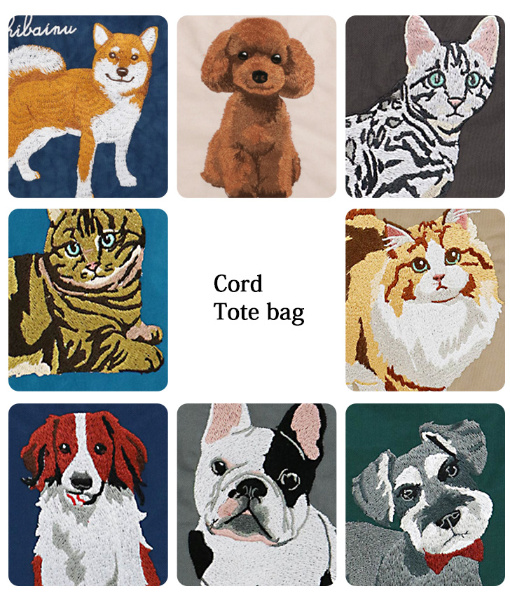 愛嬌のある表情が可愛い犬と猫の刺繍がワンポイントのアイテム。