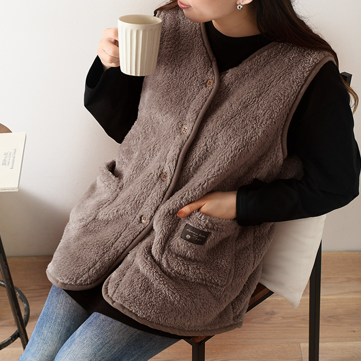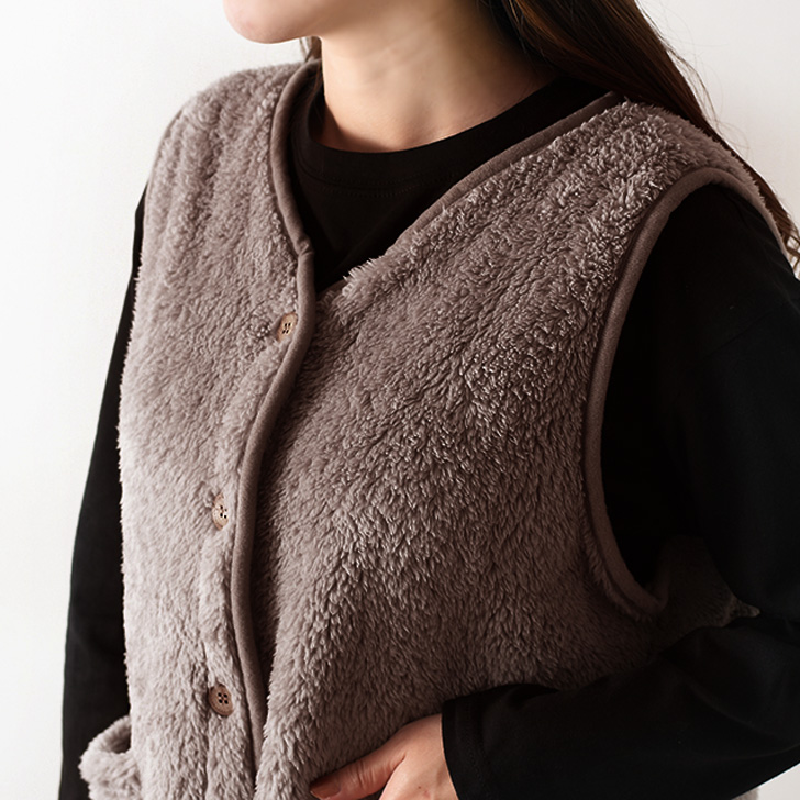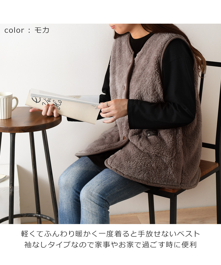ボア シープタッチ ノーカラー ベスト レディース 大人 前開き ルームウェア もこもこ ふわふわ あったか 暖かい トップス 部屋着 防寒 着る毛布 おしゃれ 無地 ポケット付き 羽織り 秋 冬 かわいい