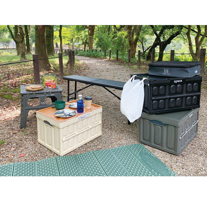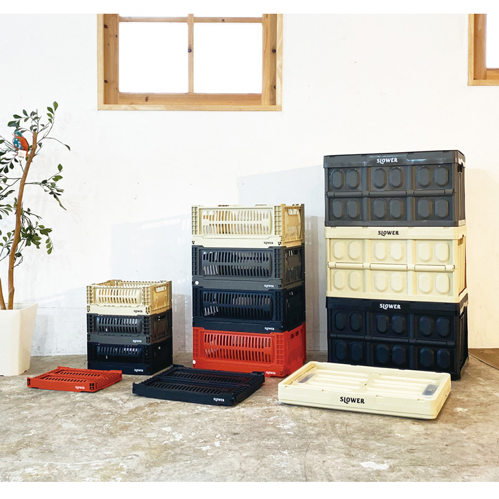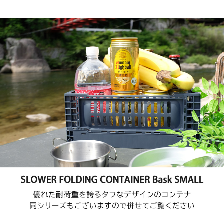 SLOWER スロウワー フォールディング コンテナ Bask S 折りたたみボックス 折り畳み 収納ボックス ストレージボックス 小さめ 野外 アウトドア キャンプ レジャー バーベキュー コンパクト 道具箱 テレワーク