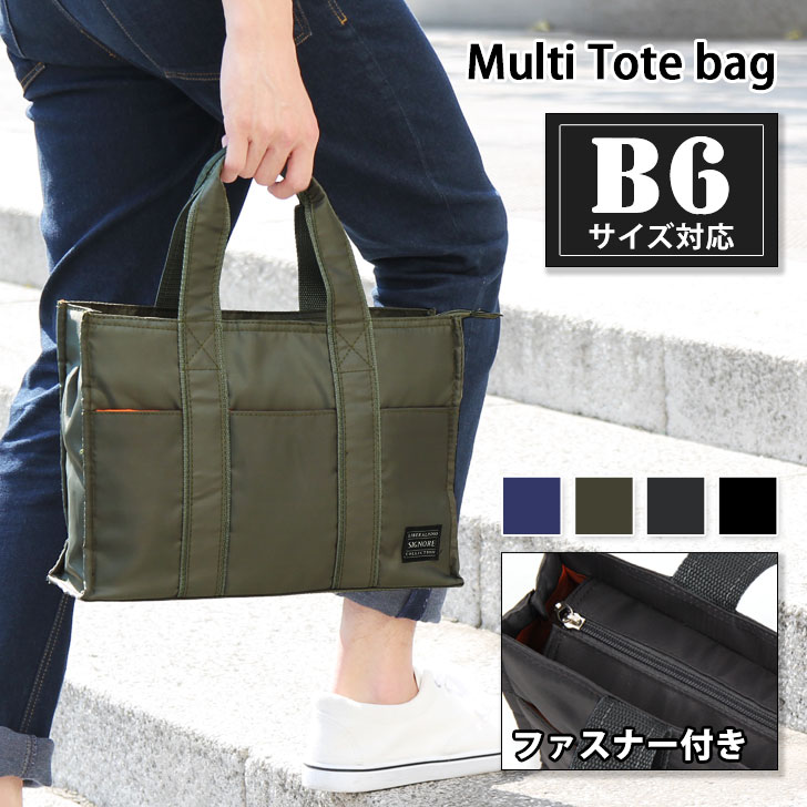 トートバッグ 小さめ メンズ 軽い 軽量 通勤 B6 ビジネスバッグ サブバッグ 黒 カーキ おしゃれ ファスナー付き 通学 手提げかばん 鞄