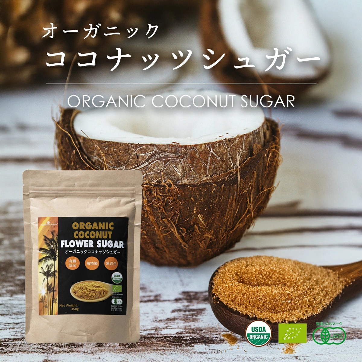 ダイエットの味方 有機JASオーガニック ココナッツシュガー 350g 1袋 低GI食品 低糖質 GI値は白砂糖の3分の1