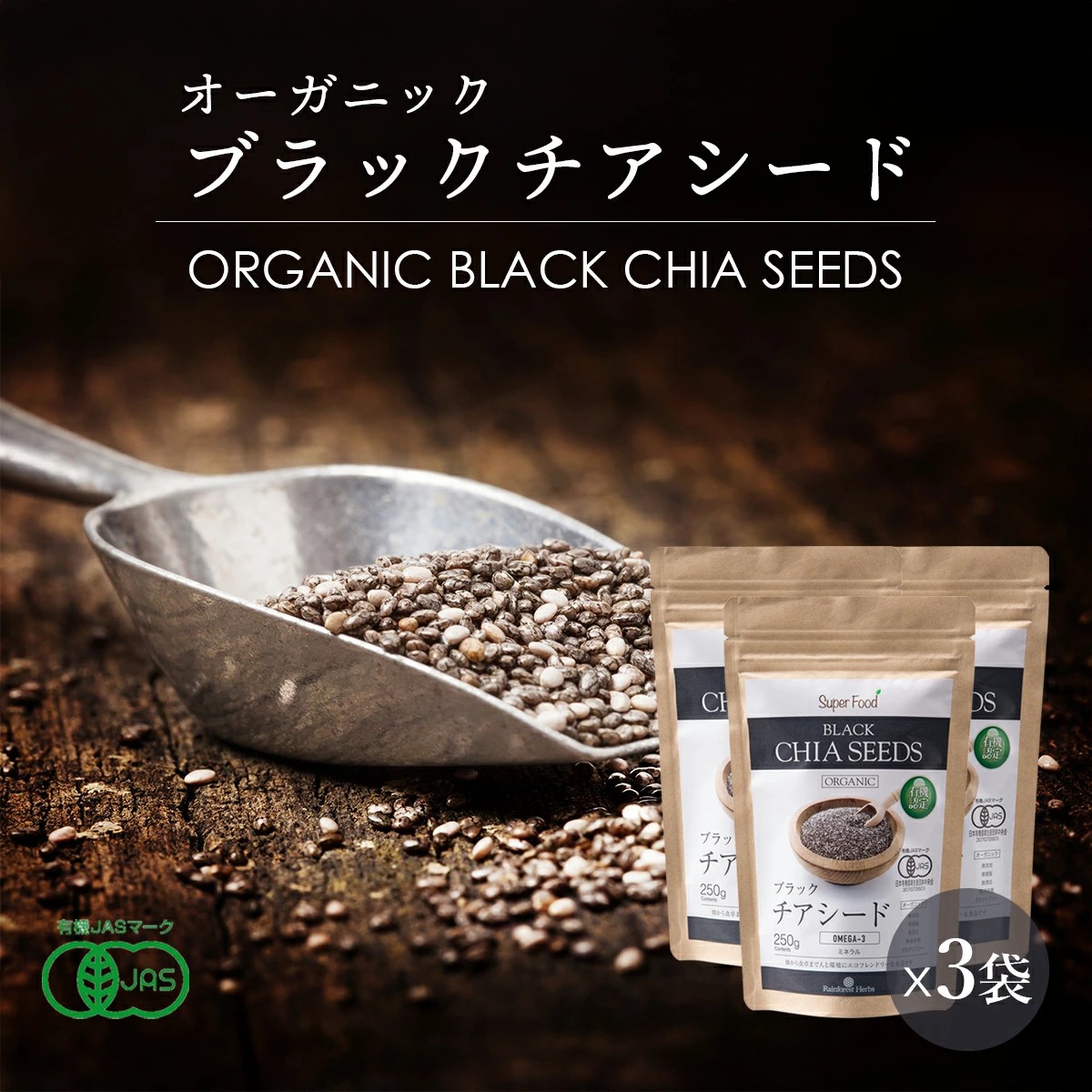 ブラックチアシード 有機JASオーガニック 250g 3袋 BLACK CHIA SEED