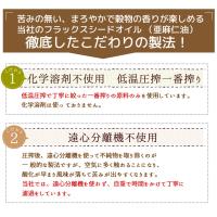 必須脂肪酸のオメガ3(アルファリノレン酸)を約55%〜約65%含んでいます。自然の成分ですので沈殿物が生じる事がありますが品質には変わりありません。無添加・無精製・無漂白・保存剤。