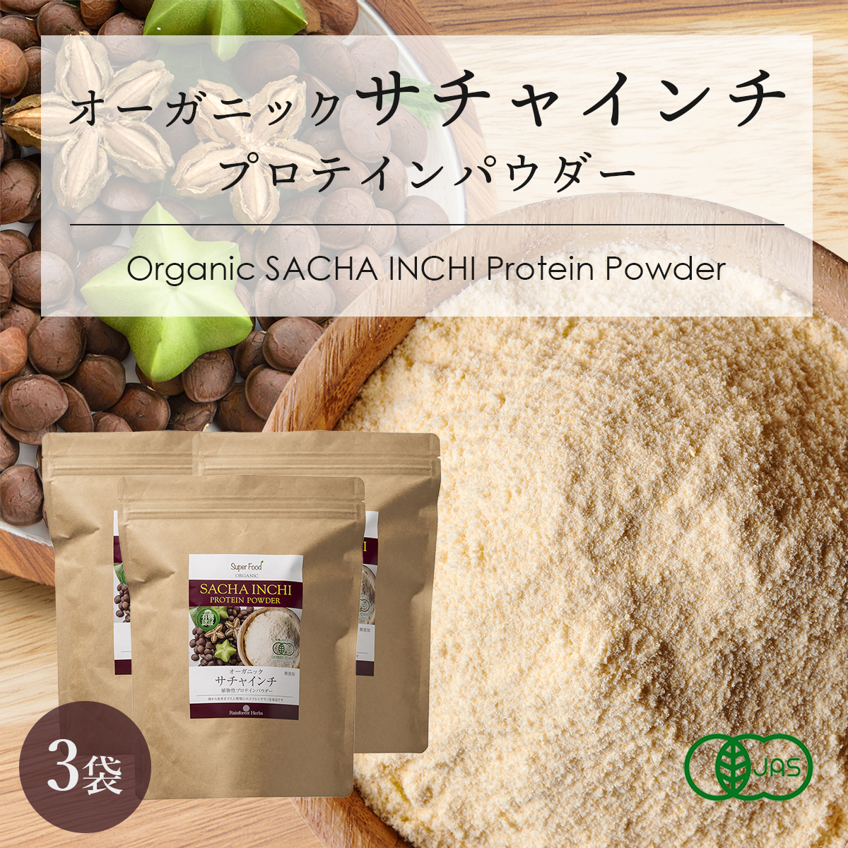 有機サチャインチパウダー サチャインチ粉 500g 3袋 ペルー産 有機JASオーガニック グルテンフリー 爆買