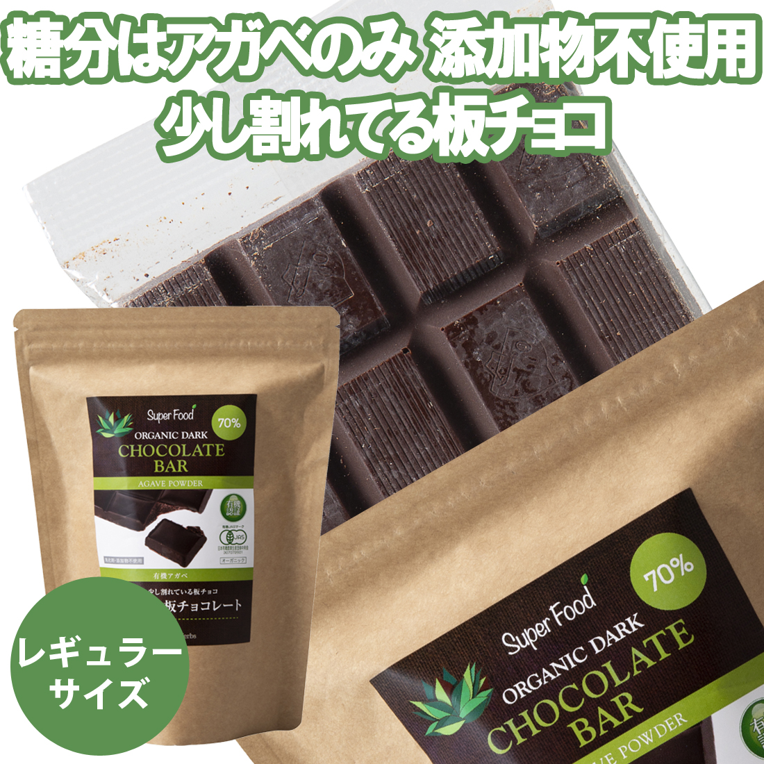 【レギュラーサイズ】ダイエットの味方 有機アガベチョコレート 100g 1袋 ダーク板チョコ ペルー産 カカオ70% 乳化剤 添加物不使用