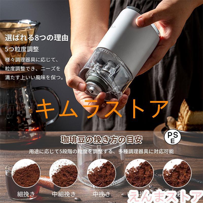 電動コーヒーミル コードレス コニカル式 コーン式 セラミック刃 豆挽き機 水洗い可 コーヒーグラインダー 自動停止 カプセル対応