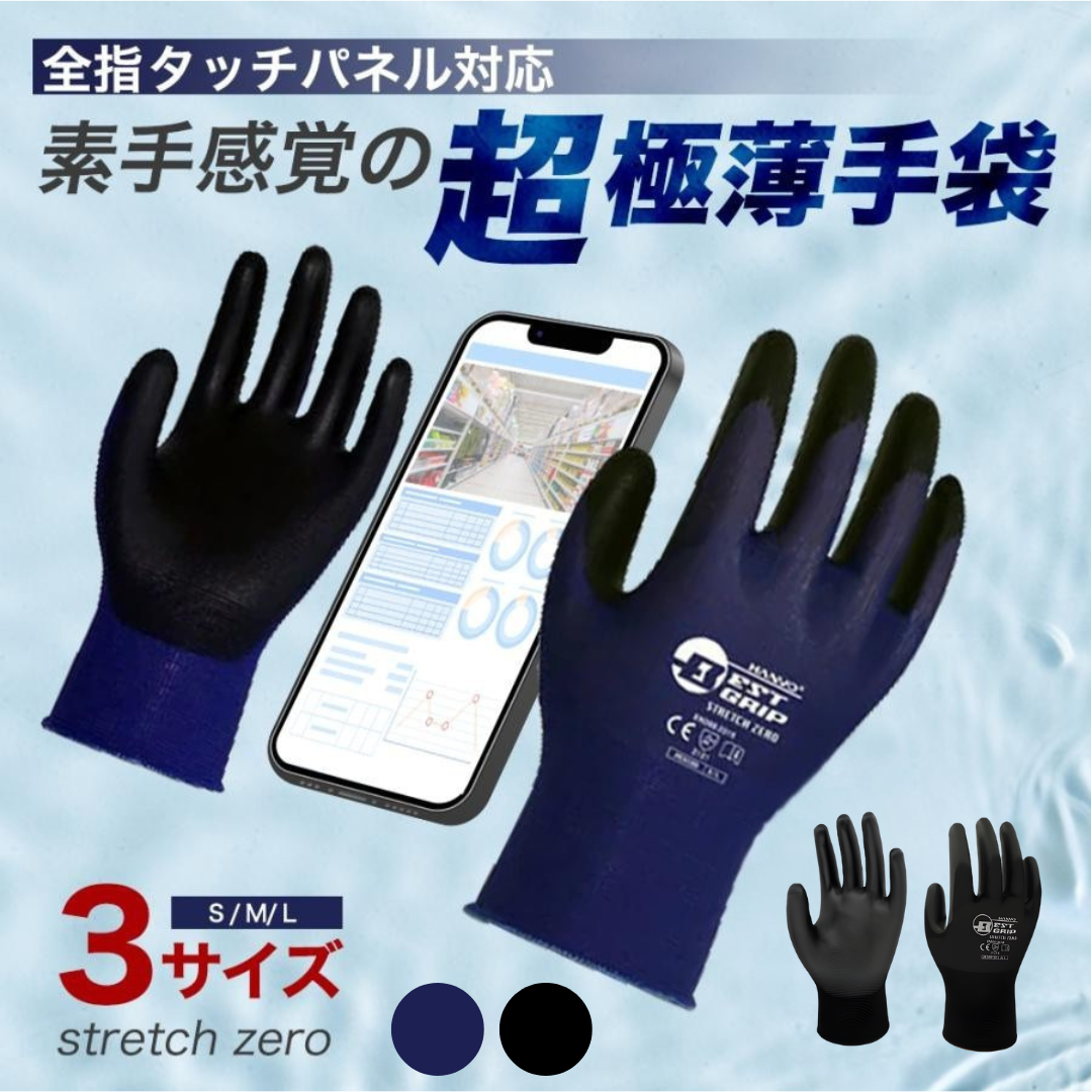 手袋 メンズ 作業用 スマホ レディース おしゃれ 薄手 黒 滑り止め 小さめ 指 タッチパネル 薄い ブルー 携帯 ブラック